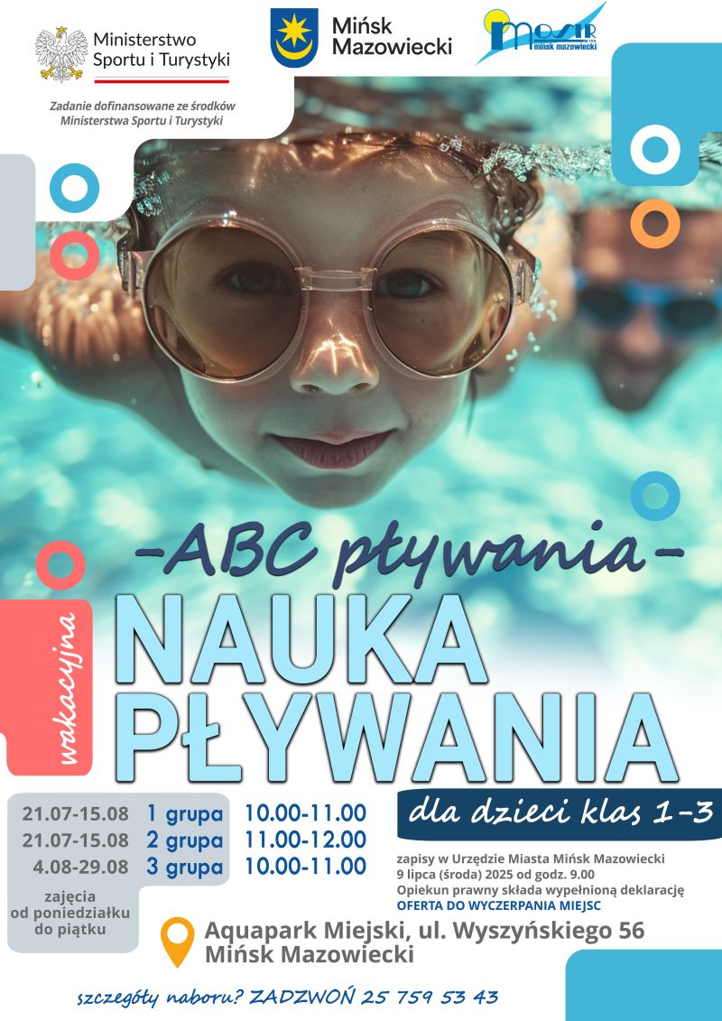 Dzieci z klas I-III zapraszamy do udziału w wakacyjnej nauce pływania. Zajęcia są darmowe.