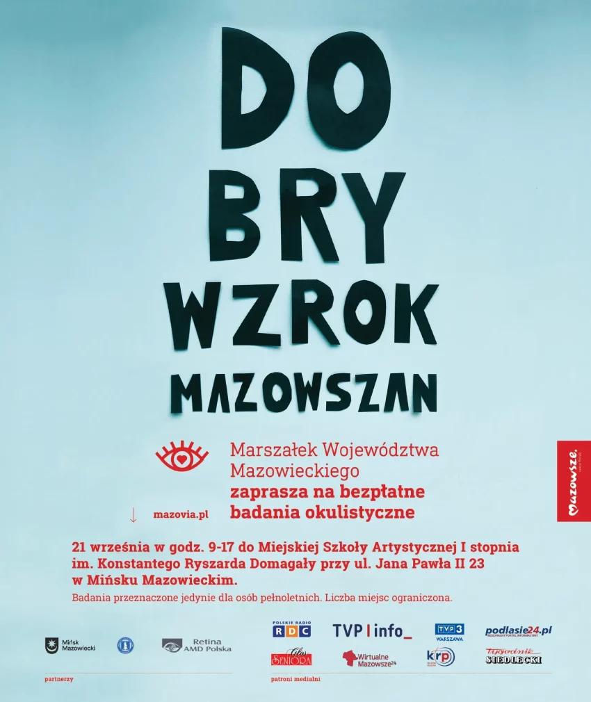 Ponadto Retina AMD Polska w ramach projektu „Dobry wzrok Mazowszan” prowadziła infolinię dla pacjentów dedykowaną projektowi „Dobry Wzrok Mazowszan” pod nr. tel. 602 634 400. W związku z powyższym Samorząd Województwa Mazowieckiego podjął decyzję o kontynuacji badań okulistycznych mieszkańców Mazowsza w 2025 r. W ramach projektu zaplanowanych jest 10 spotkań. Szóste spotkanie odbędzie się 21 września 2025 r. w Mińsku Mazowieckim.