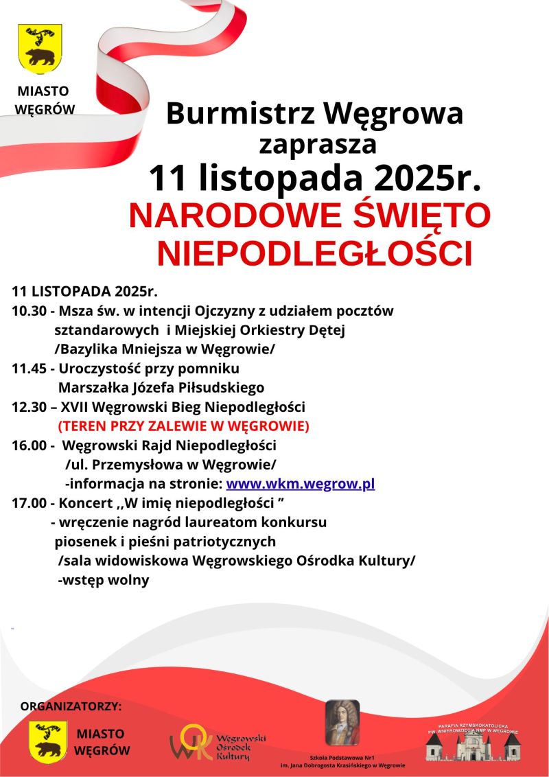 Burmistrz Miasta Węgrów zaprasza na Narodowe Święto Niepodległości