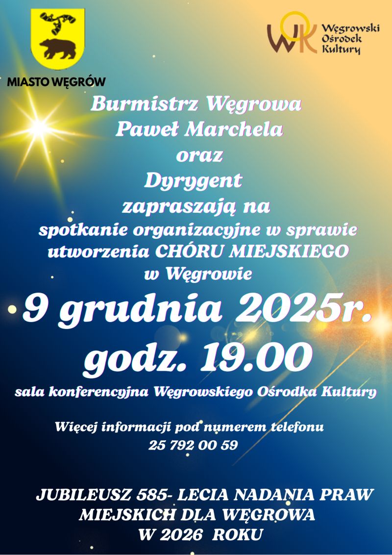 Burmistrz Miasta Węgrowa zaprasza chętne i utalentowane osoby, które chciałby zostać członkami chóru na spotkanie organizacyjne.