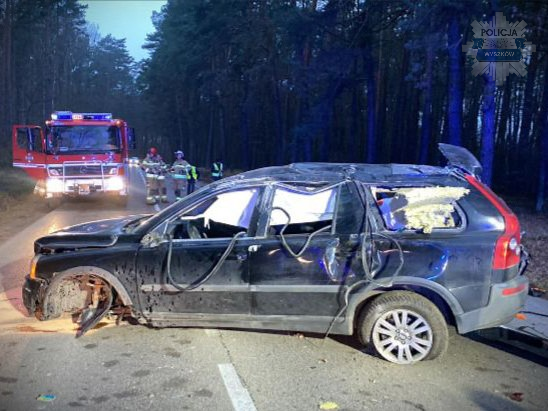 We wtorek (16 grudnia 2025 r.) wyszkowscy policjanci pracowali na miejscu zdarzenia drogowego, do którego doszło w Długosiodle na ul. Księcia Józefa Poniatowskiego. Ze wstępnych ustaleń funkcjonariuszy wynika, że kierujący osobowym Volvo 43-letni mężczyzna, jadąc od strony Starego Bosewa w kierunku Długosiodła, na łuku drogi stracił panowanie nad pojazdem, w wyniku czego zjechał na lewe pobocze, doprowadzając do dachowania pojazdu.
