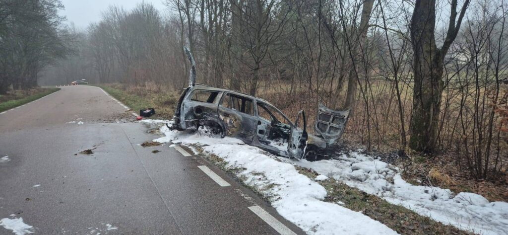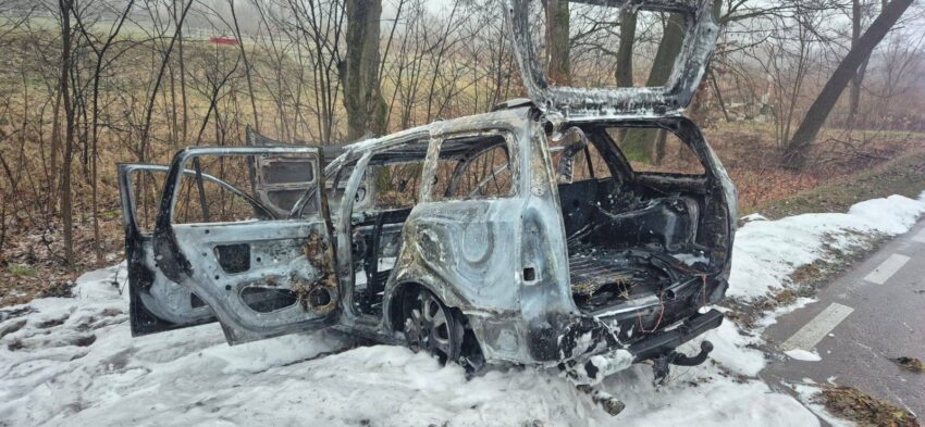 Samochód uderzył w skarpę i doszło do samozapłonu pojazdu.