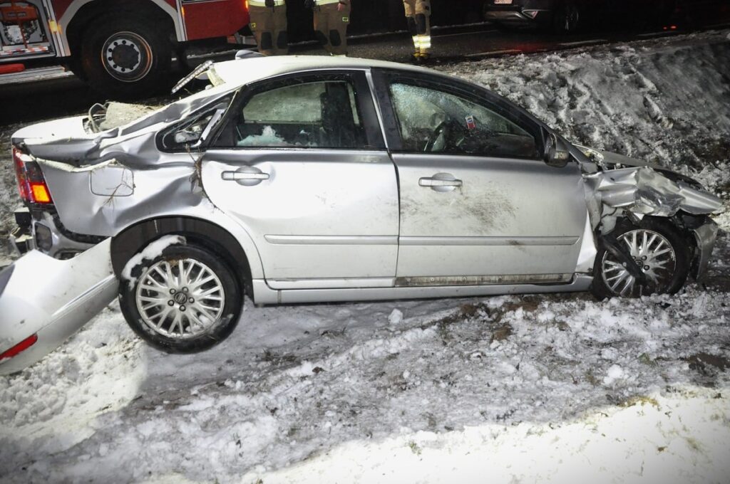 Jak wstępnie ustalili mundurowi, kierujący osobowym Volvo nie dostosował prędkości do warunków panujących na drodze i uderzył w tył poprzedzającego go BMW, za kierownicą którego siedział 45‑latek. W wyniku zderzenia auta zjechały do przydrożnego rowu, a Volvo dachowało. Na szczęście uczestnicy zdarzenia nie odnieśli obrażeń. Volvo podróżowali mężczyzna (50 lat) i kobieta (30 lat) – oboje kompletnie pijani. Badanie alkomatem wykazało w ich organizmach około 2 promili alkoholu. Jakby tego było mało, próbowali wmówić policjantom, że za kierownicą siedziała „nieznana im trzecia osoba”, która oddaliła się z miejsca zdarzenia.