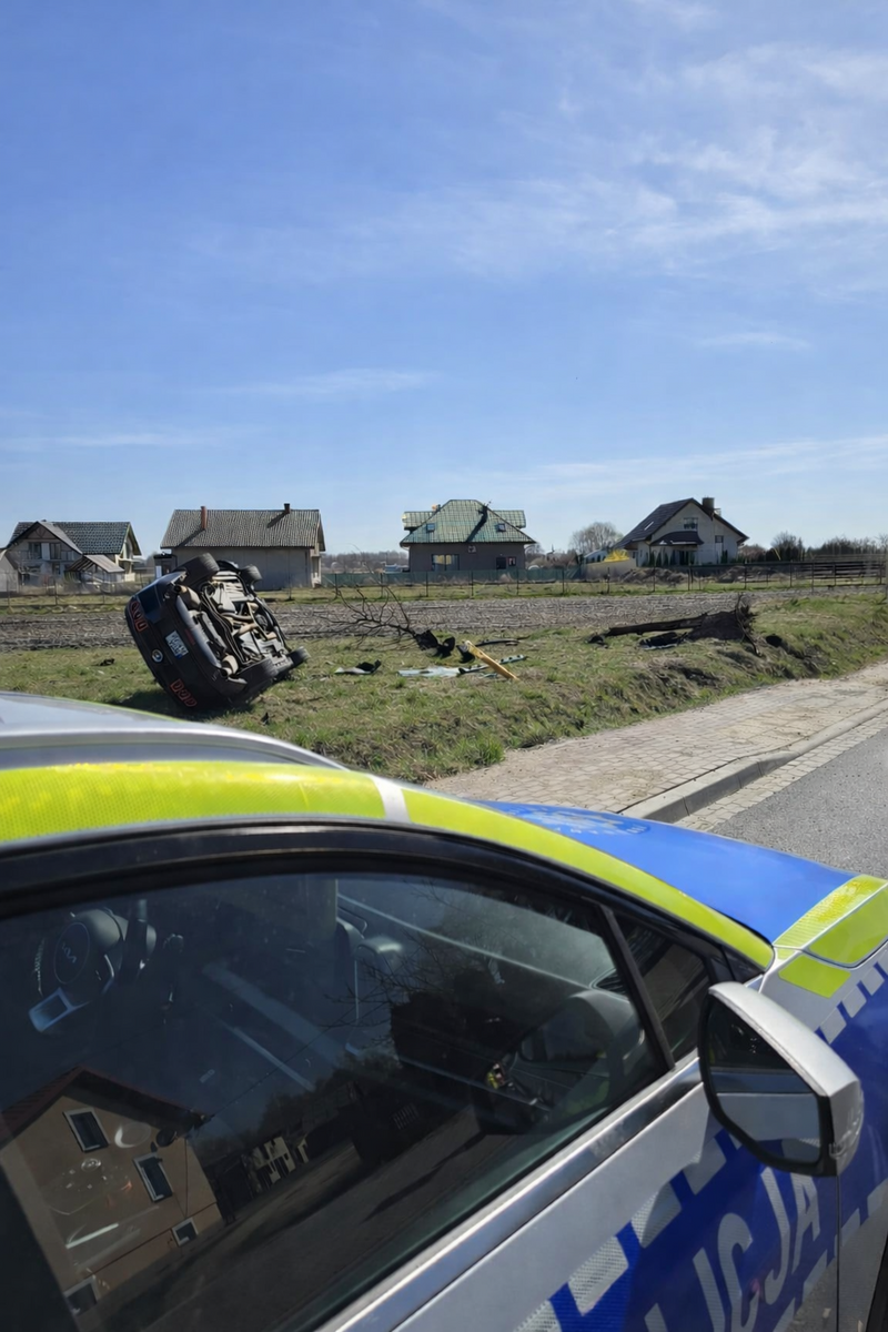 W wyniku nadmiernej prędkości, kierujący stracił panowanie nad pojazdem, uderzył w skarpę przydrożnego rowu, a następnie uderzył w drzewo i dachował. Odniósł on obrażenia ciała. Kierowcą okazał się 53-letni mieszkaniec powiatu sokołowskiego. Badanie alkomatem wykazało u niego prawie 3 promile alkoholu w organizmie.