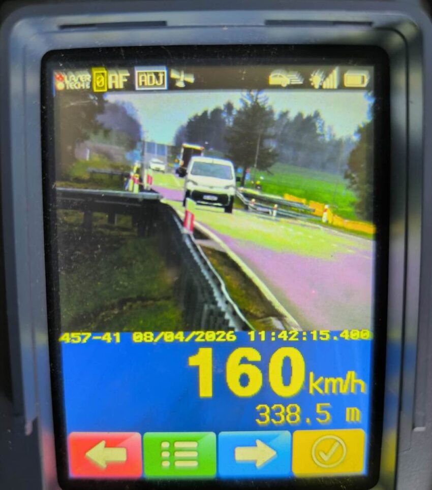 km/hPolicjanci z siemiatyckiej drogówki prowadzili kontrole prędkości na drodze wojewódzkiej numer 690 relacji Siemiatycze – Ciechanowiec. Funkcjonariusze zatrzymali do kontroli Toyotę, która poruszała się z prędkością 160 km/h w miejscu, gdzie zgodnie z przepisami można jechać maksymalnie 90 km/h. Oznacza to przekroczenie dopuszczalnej prędkości o 70 km/h. Zgodnie z nowymi przepisami kierujący, mieszkaniec Ostrołęki, stracił prawo jazdy na trzy miesiące. Policjanci nałożyli na niego również mandat w wysokości 2000 złotych, a na jego konto trafiło 14 punktów.