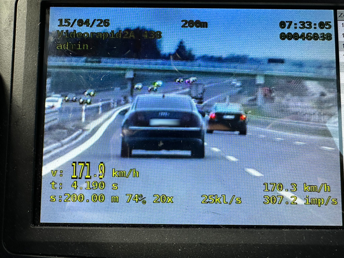 Jeszcze szybciej poruszał się 33-letni mieszkaniec pow. ciechanowskiego kierujący Audi, który w tym samym rejonie jechał z prędkością 171 km/h. W jego przypadku kontrola zakończyła się mandatem w wysokości 2 500 złotych oraz 15 punktami karnymi.